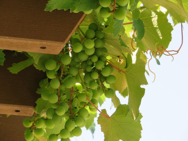 また、果実の小庭で以前に紹介したブドウが、かなり成長していました