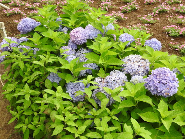 パレットガーデンの周りの道の脇にアジサイが綺麗に咲いています