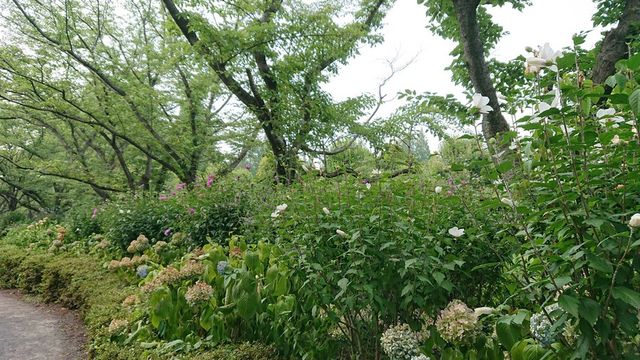遊歩道の方は一重咲きで、紫色もご覧いただけます