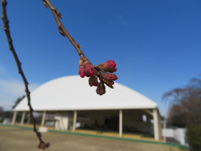 ハートフルファームの桜はまだつぼみが多く、2分咲き