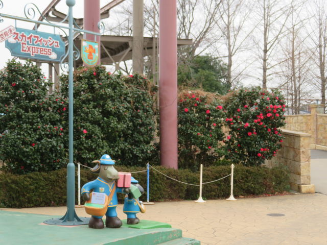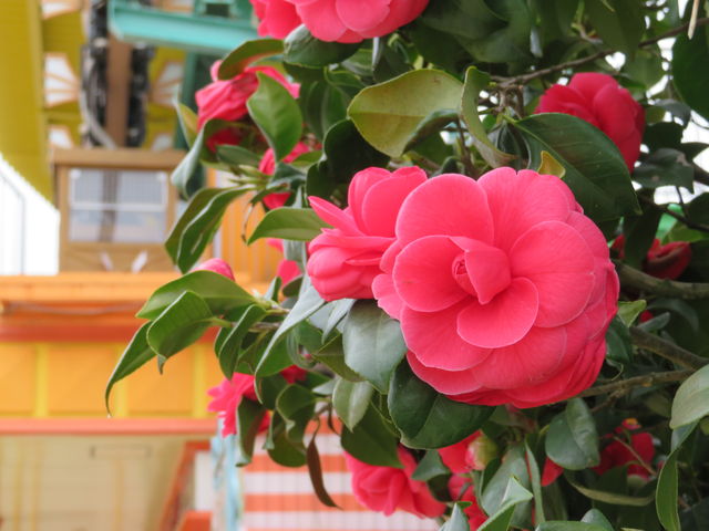 「空輸便スカイフィッシュExpress」入口では、椿がキレイに咲いていますよ