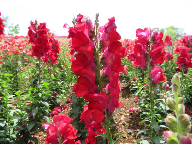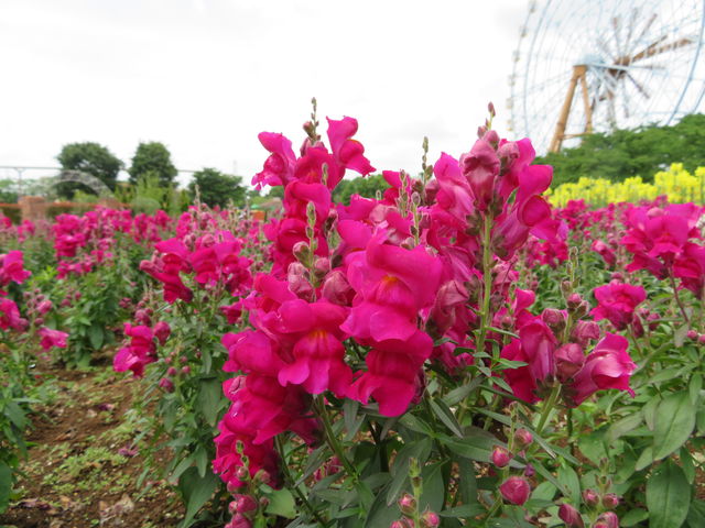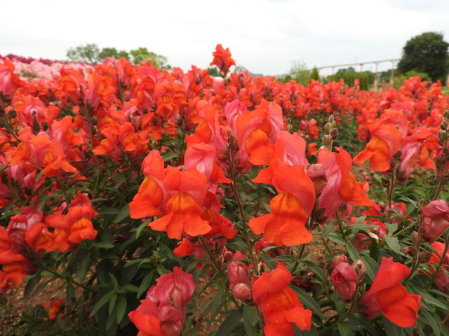 キンギョソウは、切り戻しをしたため緑が多めですが