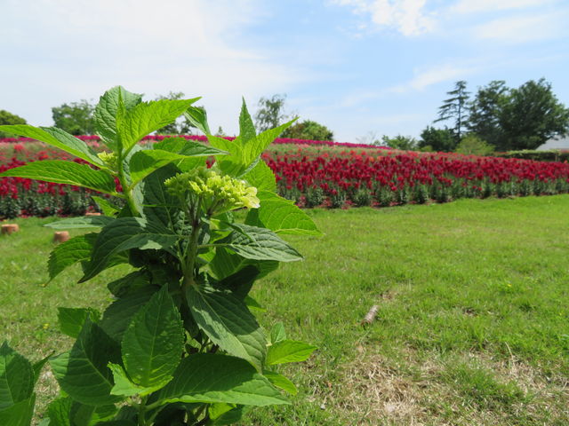 キャンバスガーデンの、観覧車側通路にあるアジサイも成長してきました