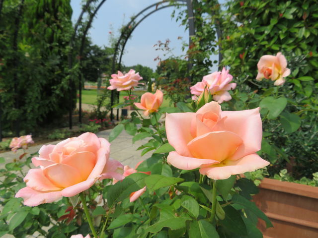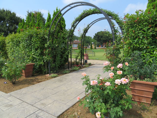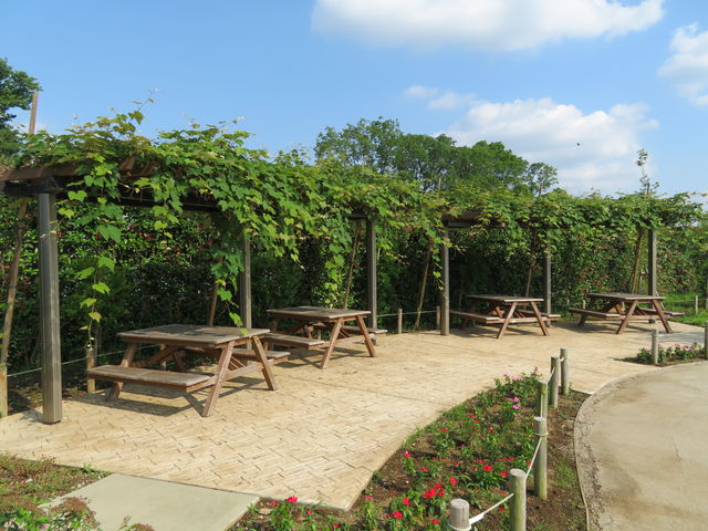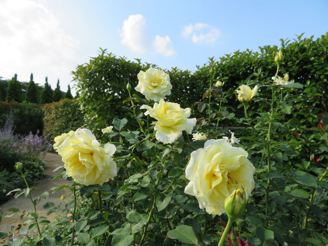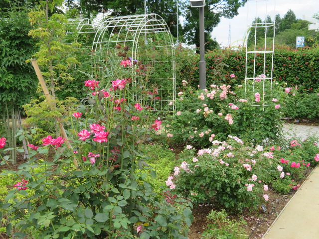 ローズガーデンの様子はというと、バラはまだ見られましたよ