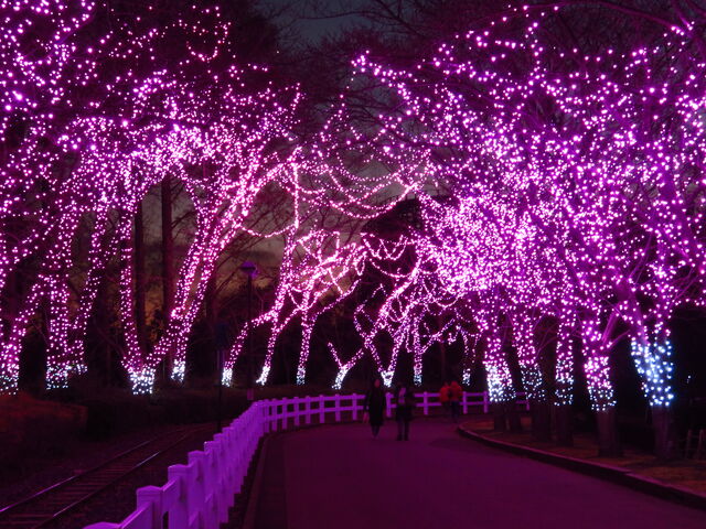桜並木のようなピンク色のイルミネーション空間を歩くことができます
