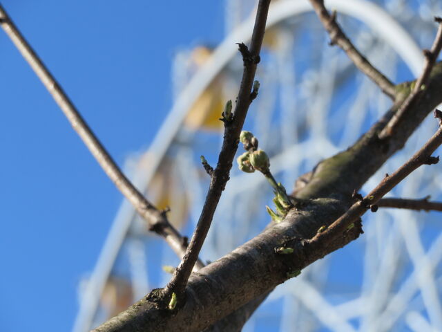 ハナモモ(花桃)はつぼみがふっくらして目立つようになってきました