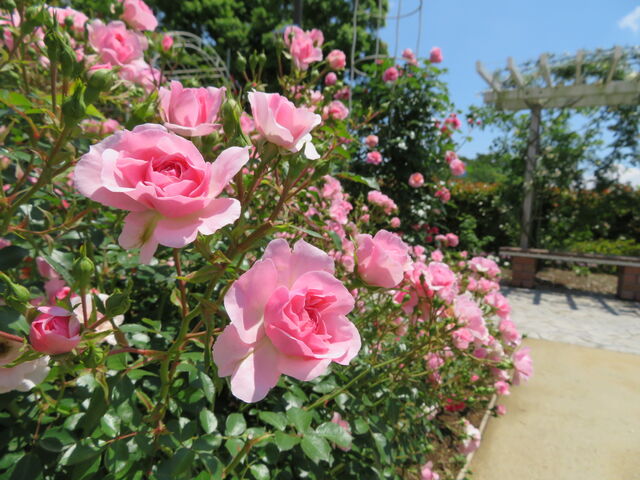 ハートフルガーデン「ローズガーデン」のバラの開花状況です。