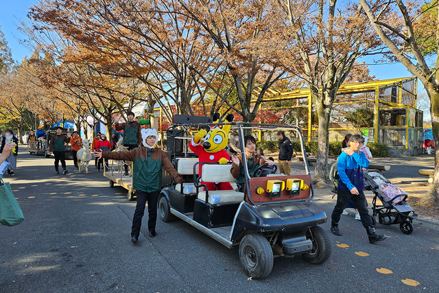 毎週日曜日 13時から約30分間、動物園を動物たちと一緒に行進するイベントです。