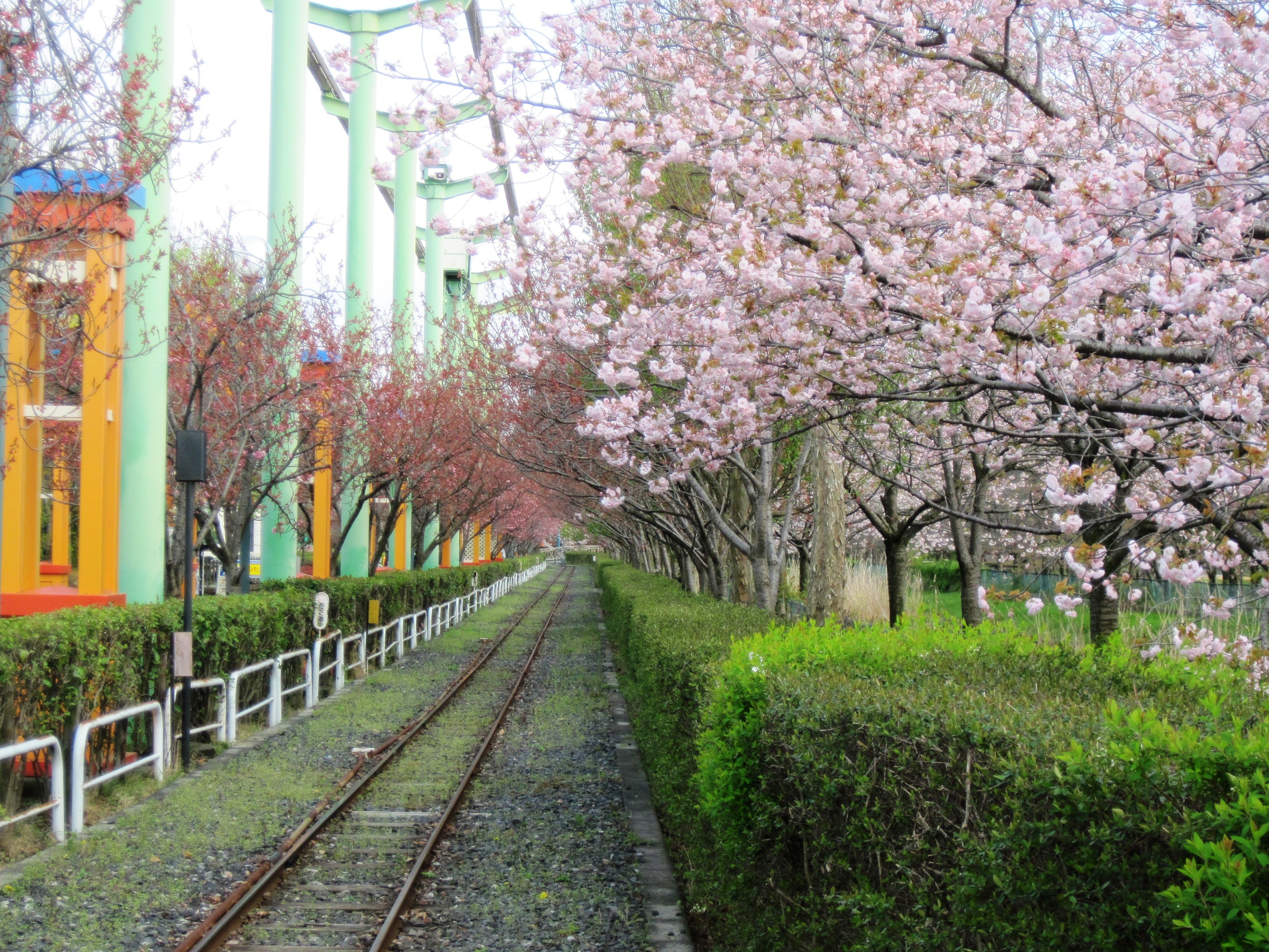 同じ写真の左側の赤っぽい木も八重桜ですが、