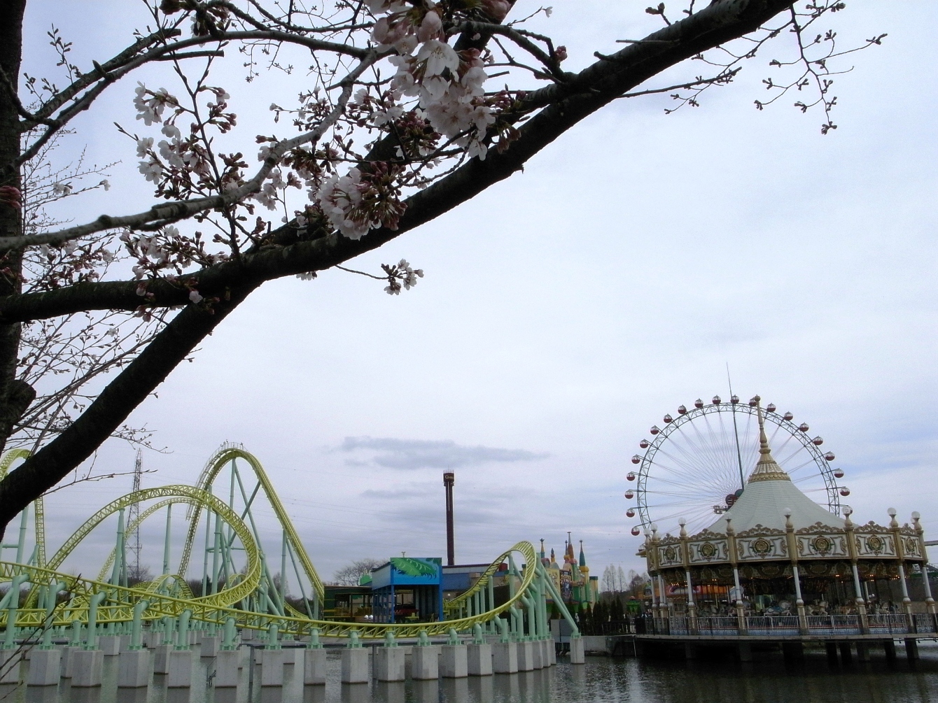 また、ここからは、桜越しに新滑空水上コースター