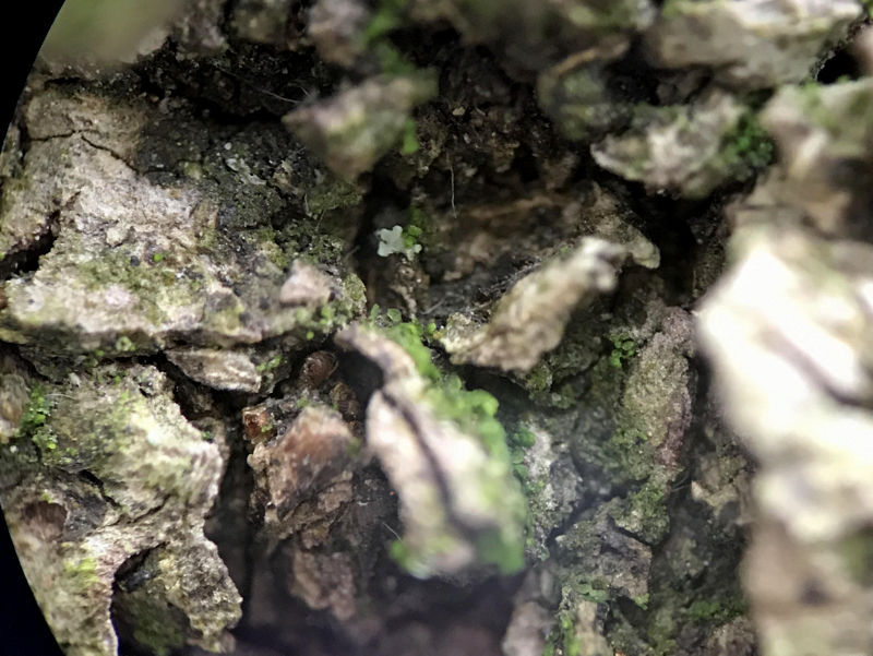 プレートは外すことができて、地面や木の幹などを直接観察することもできます。で、木の幹(やはり木の種類は分かりませんが)を観てみると...。