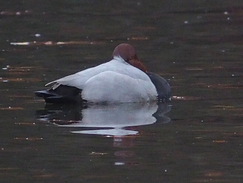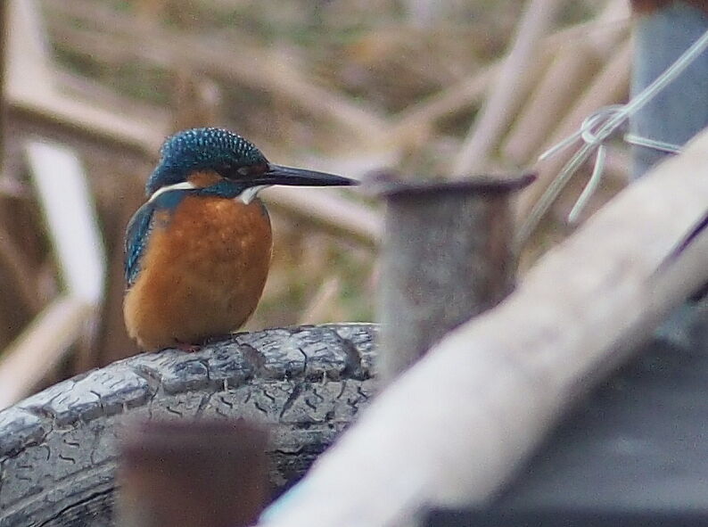 で、その猛禽類ですが、手賀沼の対岸近くの杭にオオタカが止まっていました(写真上)。よくあんな遠方のオオタカを見つけられたなというほどの距離。どうやら例年になく大量に飛来したオナガガモなどを狙っているようです。