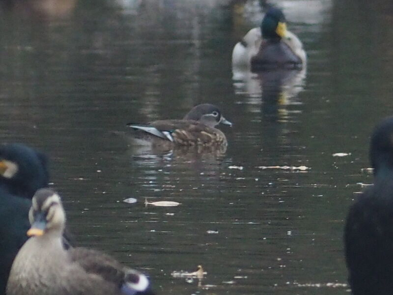 オシドリのメス(上)はオスに比べて地味ですね。オスにも会えたら良かったのですが、初オシドリ、感動しました。