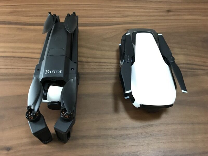 既に持っている中国DJIのMavic Air(右)と並べてみました。どちらの昆虫のイメージです。Mavic Airがゲンゴロウなら、ANAFIはアメンボですね。畳むとMavic Airのほうがコンパクトです。