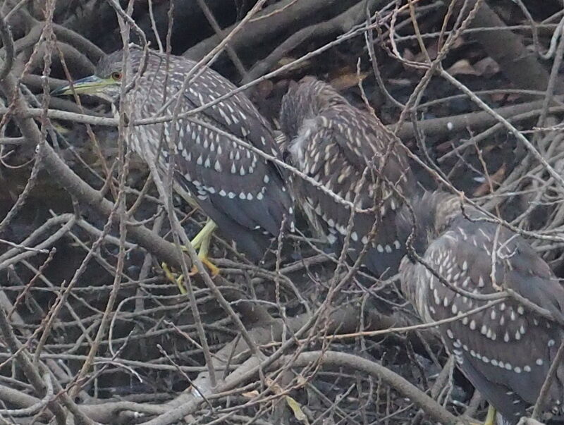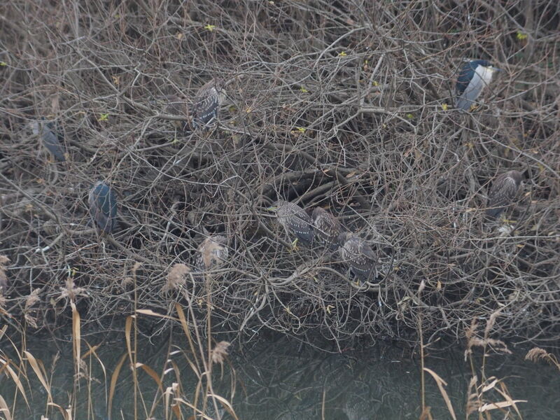 利根運河でゴイサギとホシゴイ(ゴイサギの幼鳥)のコロニーに遭遇。20羽以上いました。