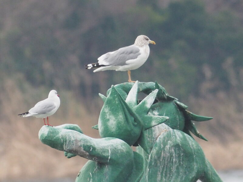 これはニシセグロカモメです。手賀沼ではかなり珍しいカモメだそうで、見られてよかったです。それにしても、左下のユリカモメに比べてデカいですね。