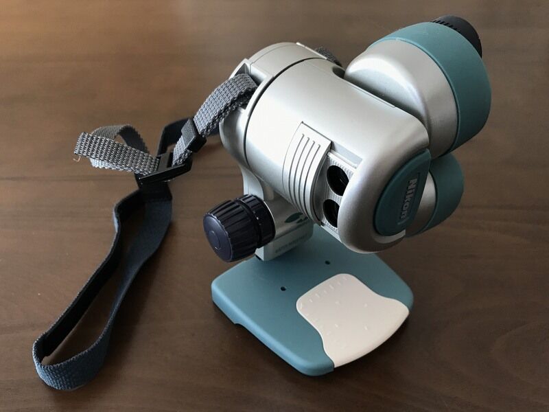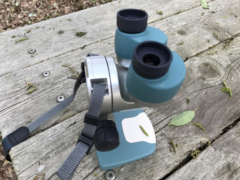 双眼実体顕微鏡というと、大学や企業の研究室に鎮座しているものを思い浮かべますが、こちらは野山で生き物を観察するためのもの。重さが400g以下でストラップも付いているので、簡単に持ち運べます。偶然、その存在を知って一目惚れした次第。