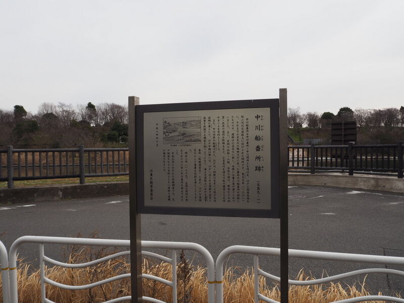 中川番所が実際にあった場所は、この資料館のすぐ南の工場の敷地だそうです。角にこんな看板が立っていました。