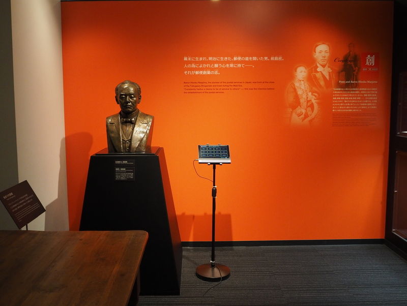 続いて訪れたのが郵政博物館。郵便の歴史を紹介する博物館で、たばこと塩の博物館のすぐ近く、スカイツリーのソラマチにあります。こんな博物館がスカイツリーの関連施設の中にあるとは知りませんでした。当然、前島密が出迎えてくれます(笑)