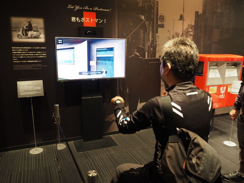 展示品はもちろん郵便関連です。古の切手の自動販売機の仕組みを示す展示や、バイクでの配達を体験できるバーチャル郵便屋さん(笑)などもあり楽しめました。