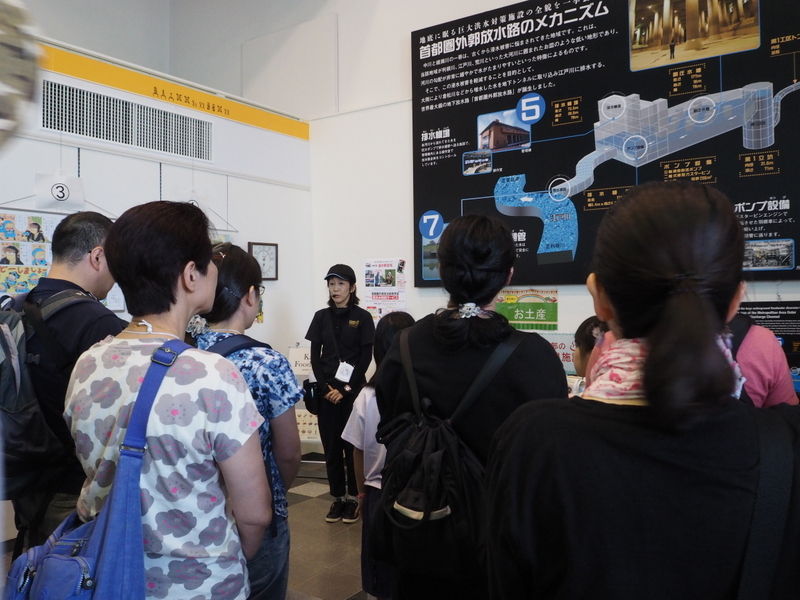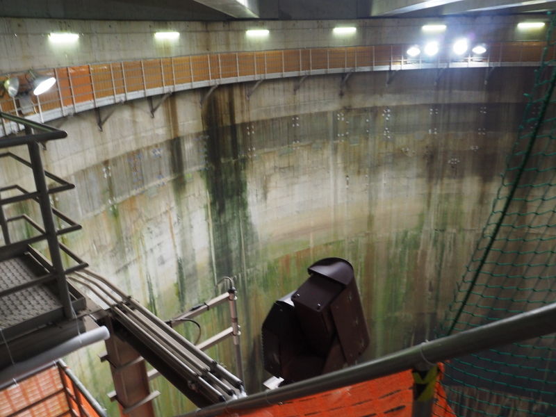 いやぁ、久しぶりの地下神殿ですが、やっぱりド迫力。しかも地上は30度以上の炎天下ですが、地下神殿の気温は18度で、まさに地下の別天地です。ただ、調圧水槽の横にある立坑(一番下の写真)には近づけません。「もっと近くに行きたいよね」と皆さんと話していたら...。