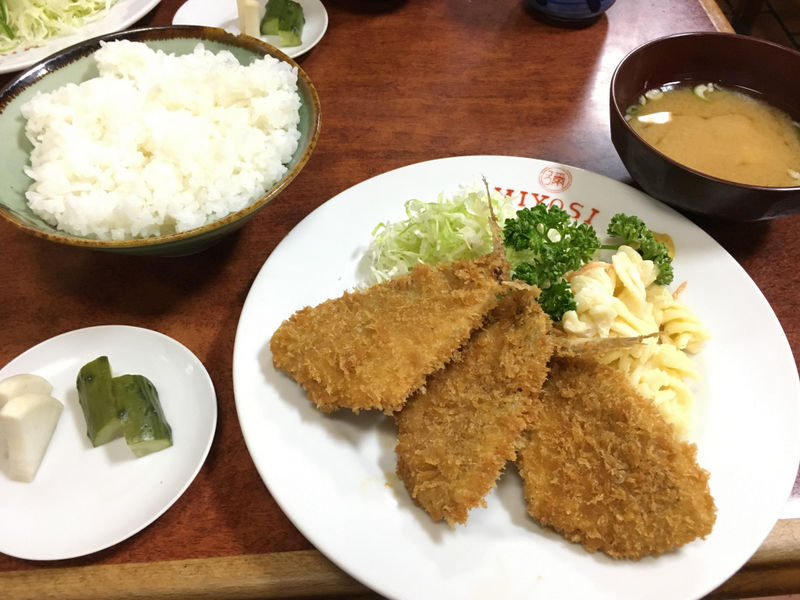 昼食はスカイツリー近くの三好弥という街の定食屋さん。私はアジフライ定食を注文しましたが、これで650円。しかもアジが肉厚でホクホクして美味しい。大満足でした。
