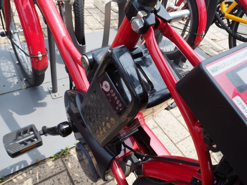 シェアリング自転車が置いてあるポートで、自転車に取り付けられている機器にSuicaをタッチすることで、自転車を利用することができます。この自転車は電動アシスト付き。結構な劇坂を登ったりしたのですが、すごく楽でした。いやぁ、これは良いです。