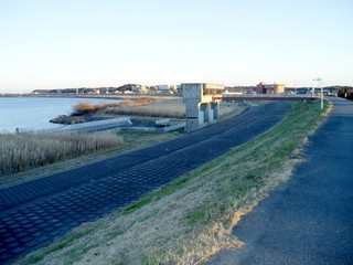 先週の日曜日はやはり安食にはたどり着いていませんでした。途中、橋の架設工事をやっているところがあり、そこどまりでした。今回は安食の見覚えのある水門まで到着。ここから利根川を離れて南下すれば、印旛沼-花見川という有名なサイクリングコースに向かえます。