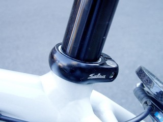 38abb474.jpg MTBのAttitudeVのシートクランプは今、サルサのLIP-LOCKを使っています。これは素晴しいクランプですが、どうもシルバーはAttitudeVのフレームに似合っていないような気がしてなりませんでした。それで我慢ができなくなって、ブラックのLIP-LOCKと交換。