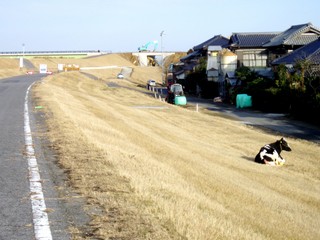 ちなみに、この牛に出会ったのは、1月15日の日曜日に我孫子市の東端の布佐から利根川サイクリングロード(佐原我孫子自転車道線)を下り、安食を目指したときのことです。途中、まだ地図にない橋の架設工事をやっているとこで、この牛はノンビリ休んでいました。そういえば、江戸川サイクリングロードでも牛に出会う"名所"がありましたね。