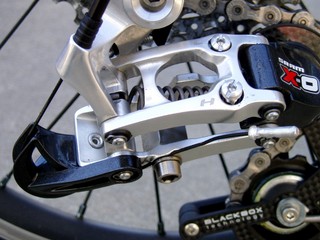 いやぁー、言い訳がましいことを書いていると疲れますね(笑) このディレーラ、とにかくカッコイイんです! ケージにカーボンを使っているので、従来型のXOディレーラに比べて存在感が違います。せっかくローノーマルに慣れたのに、またトップノーマルに戻すことを差し引いても、自己満足度は極めて大きいです。