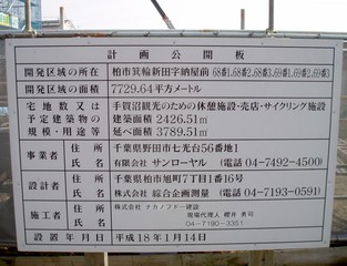 この「手賀沼観光リゾート 天然温泉 満天の湯」の建物のテイストは和です。屋根は瓦葺のようですね。ふと計画公開版を見ると、ちょっと気になる記述がありました。看板には「手賀沼観光のための休憩施設・売店・サイクリング施設」とあるじゃないですか。