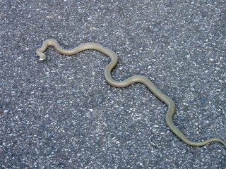 蛇 さて、利根運河からは利根川サイクリングロード柏区間に向かいました。ようやく、坂東太郎にご対面です。しばらく走ると、道に太いロープが・・・と思ったら、立派な蛇がサイクリングロードのど真ん中を占拠していました。冬眠前の憩いのひと時でしょうか。ご本人にはありがた迷惑でしょうが、自転車に轢かれると可哀そうなので、ちょっと脅かして草むらへと追いやりました。