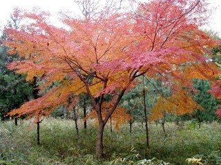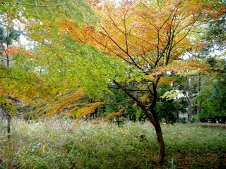 紅葉y 木曜日、祭日の一日はなんとか天気がもちましたね。でも、冬の足音が聞こえてくるような寒さでした。紅葉もいよいよ本番のはずです。というわけで、今回も理窓会記念林自然公園に紅葉を見に行きました。