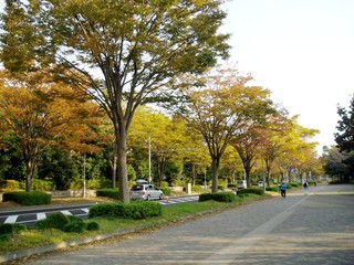 公園の紅葉 この前の日曜日は、前日の土曜日と打って変わり、MTBのAttitudeVで近場をまったりと走りました。「そうだ、柏の葉公園の街路樹なら、そろそろ色づいているだろう」と思い至って、柏の葉公園東側、公園の正面のストリートを訪ねてみました。するとご覧の通り、「見事」と言うのは微妙ですが、街路樹がそれなりに美しく色づいていました。
