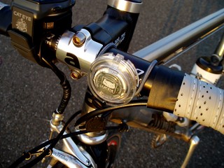 いずれも、ゴムバンドで固定する簡易なものですが、本格的なナイトランをやらないなら、これで十分です(もちろん安全運転が前提ですが)。実際には日没までに帰れることがほとんどですので、使うことはあまりないのですが、これを持っていると精神的に随分余裕が生まれます。日没前にあせりながら必死で漕ぐのは、それだけで危ないですから、使わなくても持っていて損はないです。