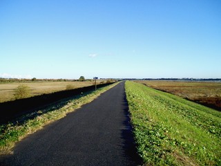 道 関宿城のすぐ南から農業用水路がずっと南へ伸びています。その用水路に沿った道が自転車で走れそうです。9月のエントリーでも二度ほど書きましたが、下総利根川大橋より南側は走れることを確認済みです。後は関宿城から下総利根川大橋までの区間が走れるかどうかです。
