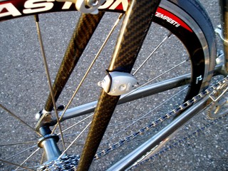 このワンタッチで着脱できるEZYシステムは、輪行バックに自転車を入れる時にペダルを簡単に外すことができますので、輪行バッグに入れた時にペダルが出っ張らず便利、との触れ込みでした。「これはすごい!」と思ったのですが、実際には別にペダルを外さなくても輪行時に出っ張って困ることもなく、無意味な機能でした。それどころか、簡単に外せるため駐輪の際にペダルだけ盗まれるリスクもあります。余計な機構が付いてる分だけ重くなりますし、はっきり言って私にはアイデア倒れでした。