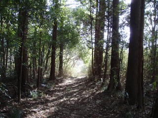 金山の森3 金山の森4 実はこの里山の森を抜けて道路に出ると、さらにエクステンションがあります。道路の向かい側に抜け道があり、そこがさらに森になっていました。わけも分からず抜け道を下ると、やがて農道に出ることができました。でも、どこか分かりません(苦笑)。頼みのハンディGPSを見てもよく分からない。