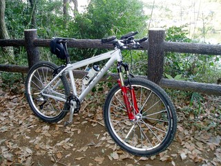 3738c743.jpg フロントサスをスカレブSPVに取り替えたのをもって、MTBのAttitudeVのすべてのパーツを交換してしまったことに、今頃になって気付きました。つまり、フレームを残し全部交換。これも別に合わせたわけではないのですが、AttitudeVの購入後、ちょうど2年きっかりで改造が行き着くところまで行ってしまいました。