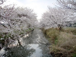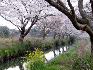 まずは豊四季ルートを北上し、大堀川に出てほぼ満開の桜並木を走りました。この桜並木はまだ若いのですが、写真左のように一部若いなりに立派な桜があります。今日は初夏並みの気温になったそうで、まさに春爛漫の大堀川でした。