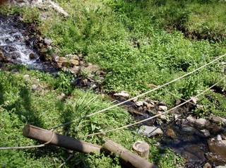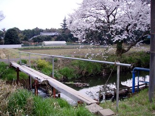 今井の桜5 今井の桜6 ところで、用水路をふと見ると桜の花が逆さに映っています。しかも散った花びらが水面に漂っています。この風情も趣がありますねぇ。しかも右の写真のような楽しげな橋があったりして(笑)。素晴しい。何時間いても飽きませんね。