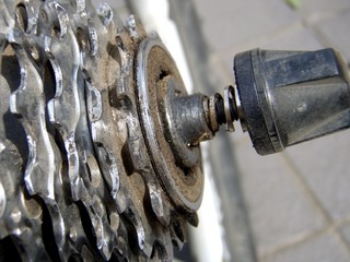 2916a29e.jpg 最近、MTBのAttitudeVのリアディレーラ辺りから、チャラチャラ音が聞こえてくるのが気になっていました。最初は、ディレーラのワイヤーの引きでも狂ったのか、と思っていましたが、どうも違うようです。そして先々週の週末、ちょうど今井の桜を見に急いでいた時、「あっ!」と突然思い出したました。スプロケをホイールに固定しているロックリングが緩んでいる際に起こる症状です。
