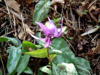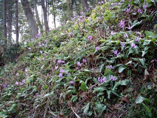 住宅地の中の傾斜林にカタクリの可愛らしい花が一面に咲いていました。こんな群生地は珍しいそうです。素晴しいです。地元の皆さんが、愛情を込めて見守った成果ですね。カタクリの花は写真で見たことはあるのですが、実物は写真以上に可憐でした。