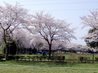 その右の写真は柏公園の桜です。ここの桜が見ごたえあることを、EASTさんに昨年教えていただきました。去年は半分葉桜でしたが、今年は満開の桜を愛でることができました。緑の中の桜、コントラストが見事で、こういうのもいいですね。