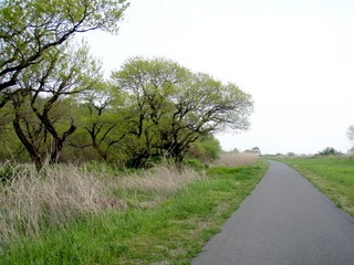 取手1 取手2 その古利根ルートからやすらぎの道経由で我孫子市の東端、布佐へ向かい、利根川の栄橋を渡って、久しぶりに取手の芸大下の利根川河川敷の道を走りました。ここはいつ来ても感動しますね。河川敷が雑木林になっており、そこをほぼ真っ直ぐにサイクリングロードが貫いています。5〜6箇所から同時にウグイスの鳴き声が聞こえてくるなど、この道は鳥たちのさえずりが素晴しいです。