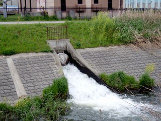 この水、手賀沼サイクリングロード沿いの地下に埋められた導水路から放流された水です。この導水路は利根川の水を取り込み、手賀沼の南の地下を流れ、手賀沼や大堀川に比較的きれいな水を供給し、坂川の源流の一つとなり、江戸川に流れ込みます。