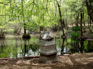この祠、20年前に地主さんたちが設置したものだそうです。一応、水神・龍神をまつる祠ですが、建立した目的はこの水源を守るためだそうです。確かに、祠のあるところでゴミを不法投棄するのは、ためらいますからね。