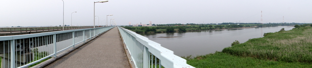 久しぶりの関宿城でしたが、今回はさらに久しぶりの蕎麦処の「蕎楽」を目指しました。というわけで、橋を渡って利根川対岸の境町へ。ここでHX-1のパノラマ機能の意外な弱点を発見。橋の手すりがうまく合成できず、ガタガタになっています。何度撮っても結果は同じでした。