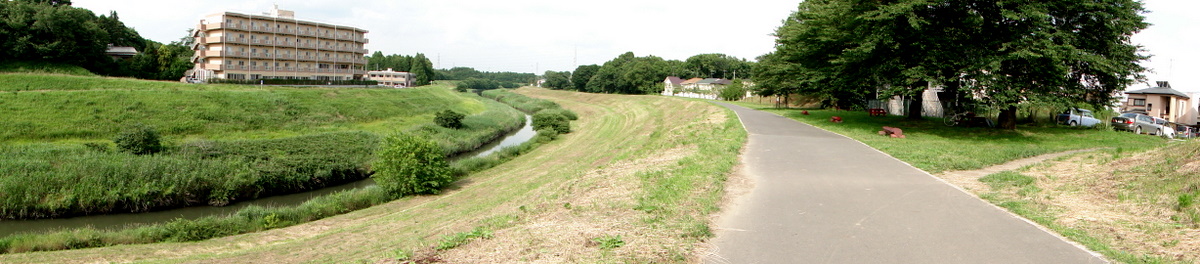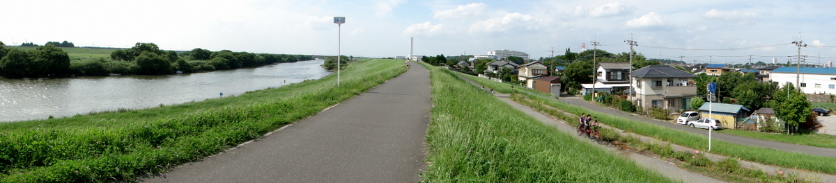 さて、映画鑑賞の後は江戸川、利根運河を経て、大堀川ルートを走りました。パノラマ写真は上から江戸川、利根運河、大青戸の森の道です。